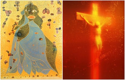 While there was a time when much if not most art was religious in subject, the art that bothers with religion today, especially Christianity, loves to trash, belittle, and blaspheme the sacred. In this the middle finger is lifted not toward the buyer whose padded pockets make it all possible but to the God who has given His one and only Son to be our Savior and Lord. Years ago it was more basic -- stick a crucifix in a beaker of urine and call it done. Now they actually work at the art but use everything from dung to semen in their multimedia displays of shame. Inevitably, there is some erotic, generally homoerotic, image hidden or obvious in their work. Take that, the holy and might God of heaven and earth! All of the blasphemy is validated with the price fetched by these things (I hesitate to call it art) and by the prizes awarded -- seemingly for being the most outrageous of all.